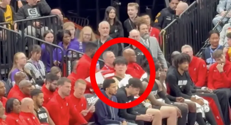 杨瀚森在NBA“升级”了,替补席终于有位置坐,还有专人递水!